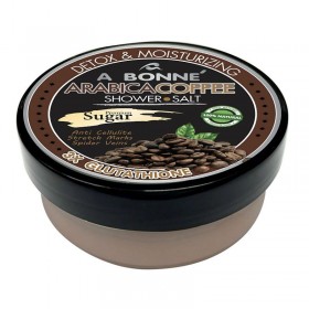 Muối Tắm Spa A Bonne Cafe Arabica chứa tinh chất cà phê và muối biển tinh luyện, giúp tẩy tế bào chết, dưỡng ẩm, thu nhỏ lỗ chân lông và chống mụn nhọt cho da.