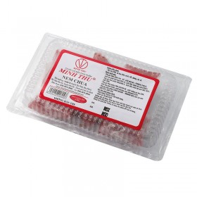 Nem Chua Minh Thư Hộp 150g có thành phần chính: thịt heo 50%, da heo 25%, muối iot, đường, tỏi, ớt.