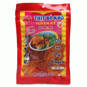 Thịt bò khô của thương hiệu Tuyền Ký được sản xuất trên dây chuyền hiện đại, khép kín giúp cho sản phẩm giữ nguyên hương vị và chất dinh dưỡng từ thịt bò tươi. Thịt bò khô được tẩm ướp vị cay Tứ Xuyên thơm ngon, hấp dẫn, kích thích vị giác, giúp cho món ăn trở nên ngon miệng hơn.