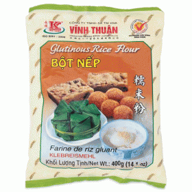 Bột Nếp Vĩnh Thuận Gói 400G có thành phần hoàn toàn từ gạo nếp thiên nhiên, được chế biến và đóng gói theo dây chuyền công nghệ hiện đại. Bột có độ mịn cao, không bị khô, không chứa các chất tẩy trắng, an toàn cho sức khỏe người tiêu dùng.