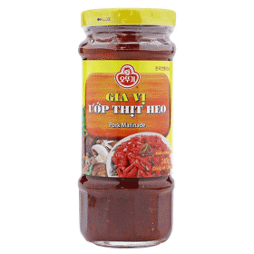 Thành phần: Đường, muối, nước tương đậu nành, nước mắm, thơm chín, ớt tươi, tỏi tươi, hành tươi, ớt bột, tiêu bột, rượu chưng cất, dầu nành tinh luyện, chất điều vị, tinh bột bắp biến tính, chất bảo quản