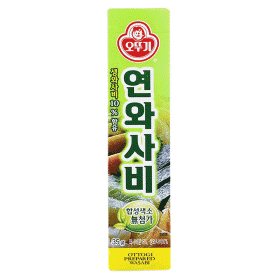 원재료명: 와사비분18%(와사비100%:중국산),생와사비10%(생와사비100%:중국산),D-소르비톨액,정제수,옥수수유(옥수수기름100%:수입산),정제염,쌀가루(쌀:국산),화이바솔-2,겨자분1.8%,구연산,비타민C,치자청색소,홍화황색소,겨자정유,올레오레진캪시컴