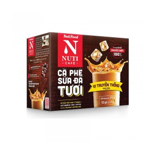 Cà Phê Sữa Đá Tươi Nuticafe đánh thức hương vị trong từng hạt cà phê bằng chiết xuất từ cà phê tươi và hạt cà phê rang xay nhuyễn.