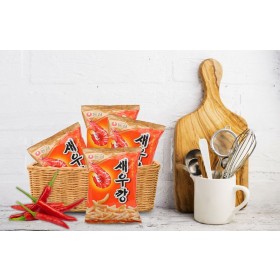 원재료명 및 원산지 : 소맥분(밀;미국산) , 전분(미국산,호주산) , 미강유 , 새우 , 팜유 , 맛베이스조미분말{천일염(신안군)} , 탈지대두(대두) , 유당(우유)