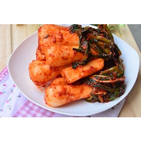 Kim chi củ cải Chongga được làm từ củ cải non, giòn lên men trong một loại sốt tôm cay và nước sốt cá cơm.