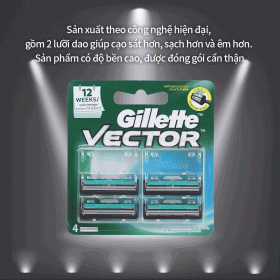 Gillette Vector Plus 면도날은 특수 설계된 듀얼 블레이드 시스템으로 밀착 면도가 가능하며 긁힘을 줄이고 더 깨끗하게 면도할 수 있다. 첫 번째 면도날은 밀착면도를 위한 날 및 두 번째 면도날은 더 깨끗하게 면도하는 것을 위한 날이다.