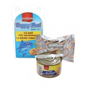 Happy Meal (combo 2 in 1) Cá ngừ xốt mayonnaise với bánh cracker là sản phẩm đầu tiên của Vissan tại Việt Nam đưa công thức đồ hộp ăn kèm bánh cracker mang đến sự kết hợp hài hòa giữa hương vị truyền thống và phong cách thưởng thức hiện đại, giúp người dùng thưởng thức món ăn một cách tiện lợi nhất mà vẫn giữ nguyên hương vị thơm ngon vốn có.
