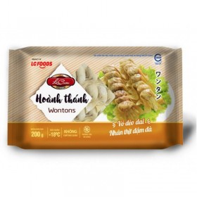 Hoành Thánh LC 200G được chế biến từ thành phần bột mì, thịt heo, tôm tươi, hành, tỏi, dầu mè và nhiều loại gia vị, sản phẩm không chất bảo quản, an toàn cho sức khỏe người sử dụng.