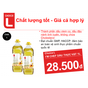 Dầu Thực Vật I'm Chef Choice L được sản xuất theo công nghệ hiện đại. Đạt chuẩn GMP, HACCP: đảm bảo an toàn vệ sinh thực phẩm chuẩn quốc tế và tốt cho sức khỏe của cả gia đình.