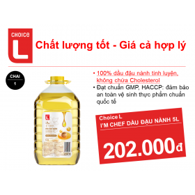 Dầu Đậu Nành I'm Chef Choice L được chiết xuất 100% từ đậu nành nguyên chất tự nhiên. Giàu Omega 3,6,9 và Vitamin E tự nhiên tốt cho tim mạch. Không chứa Cholesterol, không chất bảo quản, chất tạo màu.