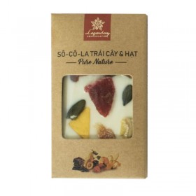 Không như những sô cô la thanh bar, Thanh hạt và Trái cây không chỉ mang hương vị đặc trưng của thanh sô cô la trắng có biến tấu cùng với vị dâu tây ngọt ngào mà còn chứa đựng những hương vị quen thuộc trái cây nhiệt đới ngọt chua tự nhiên. Thanh sô cô la nguồn nguyên liệu từ trái cây khô : xoài, ổi, chuối, mận, đu đủ, trần bì, nam việt quất, vỏ bưởi và hạt bí, hạt điều cùng với sô cô la trắng sẽ tạo nên hương vị đặc biệt.