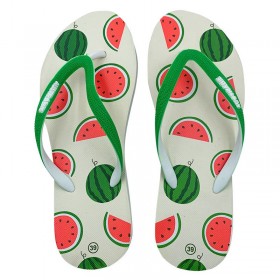 Dép có thiết kế quai kẹp tiện dụng, tiện lợi mỗi khi ra ngoài, đi biển,.... Họa tiết quả dưa hấu trên nền trắng nổi bật, trẻ trung, thời trang.