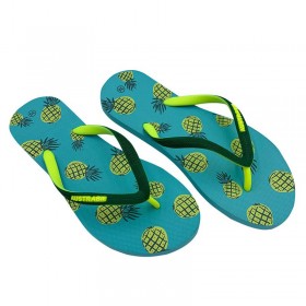 Dép có thiết kế quai kẹp tiện dụng, tiện lợi mỗi khi ra ngoài, đi biển,.... Họa tiết trái thơm vàng trên nền xanh ngọc nổi bật, trẻ trung, thời trang.