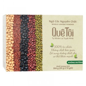 Ngũ Cốc Nguyên Chất Quê Tôi Không Đường 264G (22g X 12gói) được làm từ các hạt đậu thuần chủng với phương thức rang xay truyền thống tạo nên hương vị thơm ngon đậm đà. Các hạt đậu nguyên hạt, không tách mầm được rang với nhiệt độ vừa phải giữ lại chất dinh dưỡng quý giá trong hạt. Công thức kết hợp các loại hạt theo tỷ lệ được tư vấn bởi chuyên gia dinh dưỡng phù hợp cho mọi lứa tuổi.
