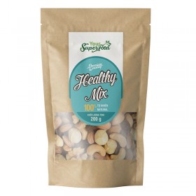 Healthy Mix Your Super Food 200G kết hợp giữa vị giòn tan, béo bùi đặc trưng của hạt Óc chó, Hạnh nhân, Macca, Hạt Điều với vị dẻo mịn, ngọt dịu của Nho Úc rát ngon miệng khi thưởng thức. Các loại hạt cùng nho khô với các chất dinh dưỡng phong phú như Protein, Omega 3-6, Vitamin E, B2, B3, các khoáng chất như Sắt, Magie, Kẽm, Canxi là món ăn cung cấp dinh dưỡng mỗi ngày, thích hợp để chăm sóc cho cả gia đình.