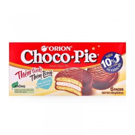 Bánh Choco-Pie là sản phẩm bánh cao cấp của thương hiệu Orion từ lâu đã được đông đảo người tiêu dùng yêu thích. Sản phẩm làm từ các thành phần tự nhiên mang đến hương vị bánh thơm ngon, hấp dẫn.