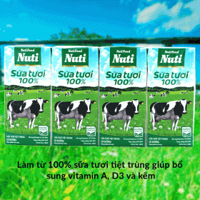 Sữa bò tươi, đường tinh luyện (3,8%), chất ổn định, vitamin & khoáng chất (A,D3,Kẽm). Có chứa sữa