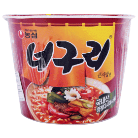 제품의 특징: 너구리의 쫄깃쫄깃오동통한 면발과 얼큰시원한 국물맛을 이젠 큰사발면으로 간편하고 푸짐하게 즐기세요. 기존의 용기면에서 볼 수 없었던 오동통통한 면발, 너구리의 특유의 얼큰시원한 국물 맛입니다. 다시마를 메인으로 한 미역, 양배추, 어묵 등의 푸짐한 건더기입니다.