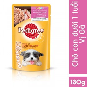 Sốt vị gà Pedigree Chicken 130g tích hợp nhiều chất dinh dưỡng, bảo đảm những chú cún của bạn sẽ xin xắn, khỏe mạnh với Omega & Zinc cho da và lông mượt mà, ít rụng, Protein cho cơ bắp chắc khỏe, dẻo dai.