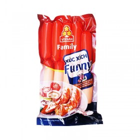 Xúc xích heo Funny Vissan được làm từ nguyên liệu tươi ngon với công nghệ chế biến bảo đảm dinh dưỡng và an toàn cho người sử dụng.